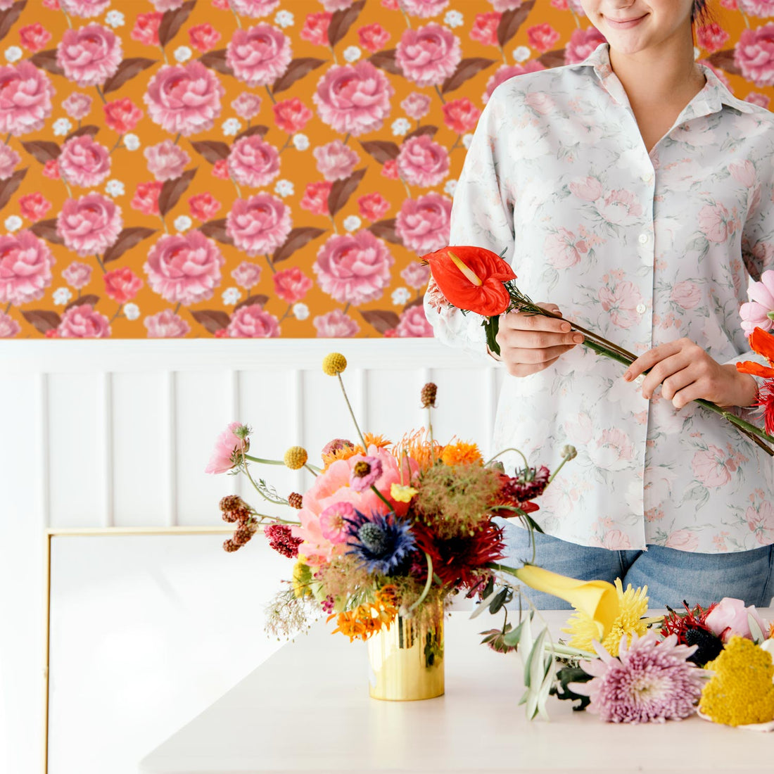 Pink Peony Wallpaper Removable Traditional Wallpaper Livettes